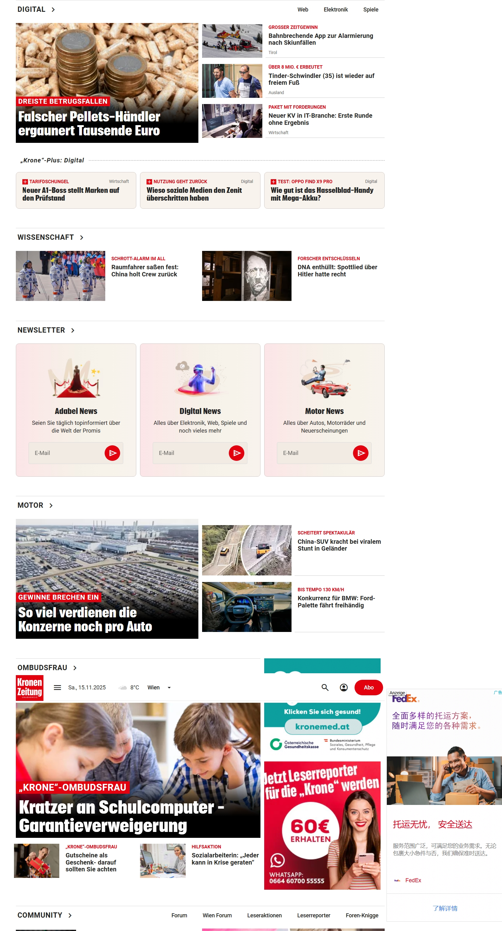 Kronen Zeitung 是奥地利最受欢迎的新闻和媒体网站,致力于为用户提供即时的新闻报道和饮食的内容。该网站覆盖了六个重要事件,尤其在政治、经济、文化和体育方面有深入的报道。Krone.at提供快速、及时的新闻更新和撰写,支持文本、图像、视频和数据等多种形式的新闻内容,满足了各种用户需求。作为主要的新闻平台之一,它为读者提供了广泛的新闻内容,并通过其交互性强的界面增强了用户体验。