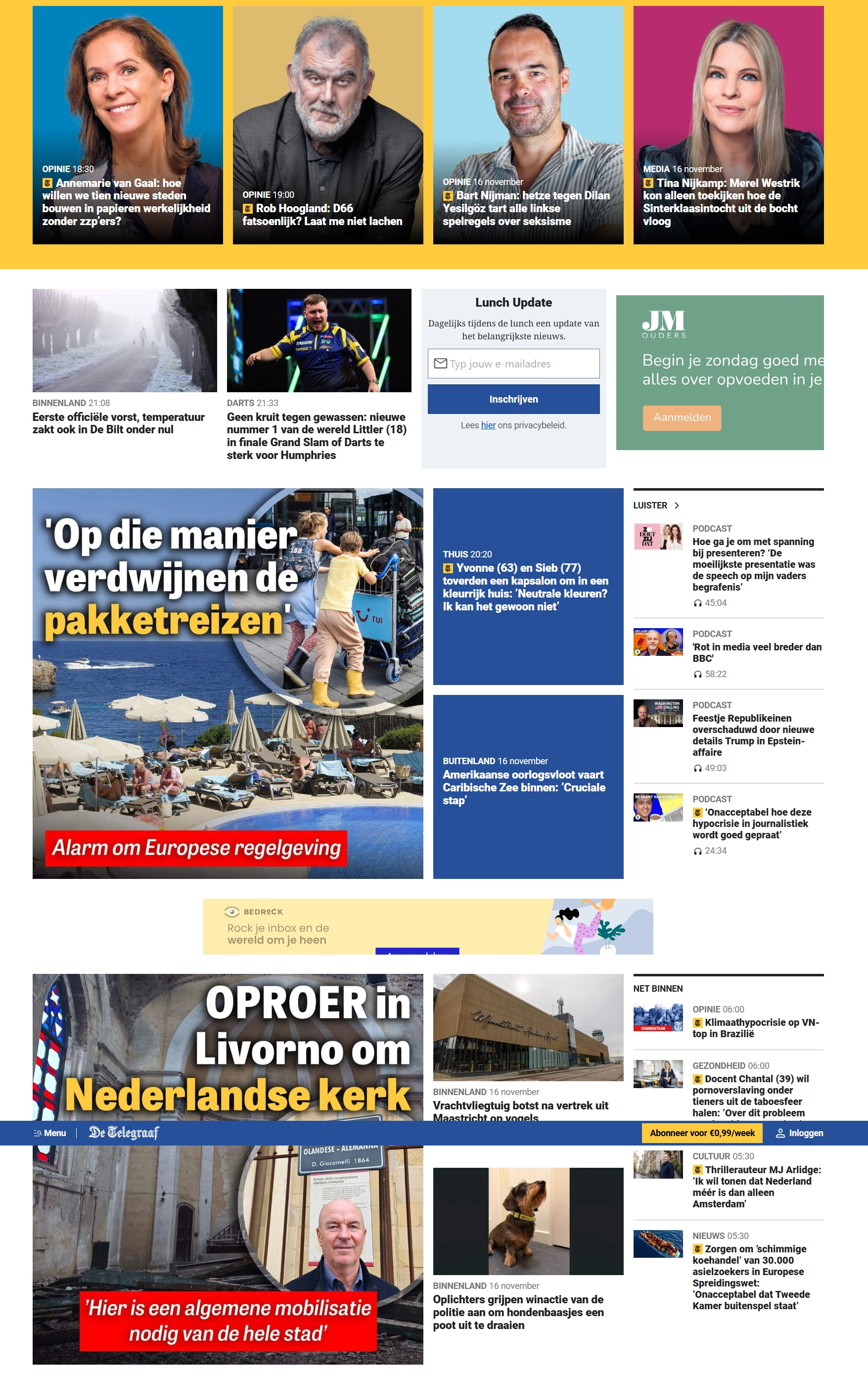 Telegraaf.nl 是荷兰最大的新闻网站之一,隶属于《荷兰邮报》集团,提供全面的新闻报道,包括国内和国际事件、政治、经济、文化、娱乐以及体育新闻。网站致力于快速更新新闻内容,涵盖从社会事件到突发新闻的各类话题。它同时通过视频、文字、图片等多媒体内容丰富用户的浏览体验,提供了即时且深度的分析报道。作为荷兰领先的新闻来源之一,Telegraaf.nl 享有广泛的读者基础。