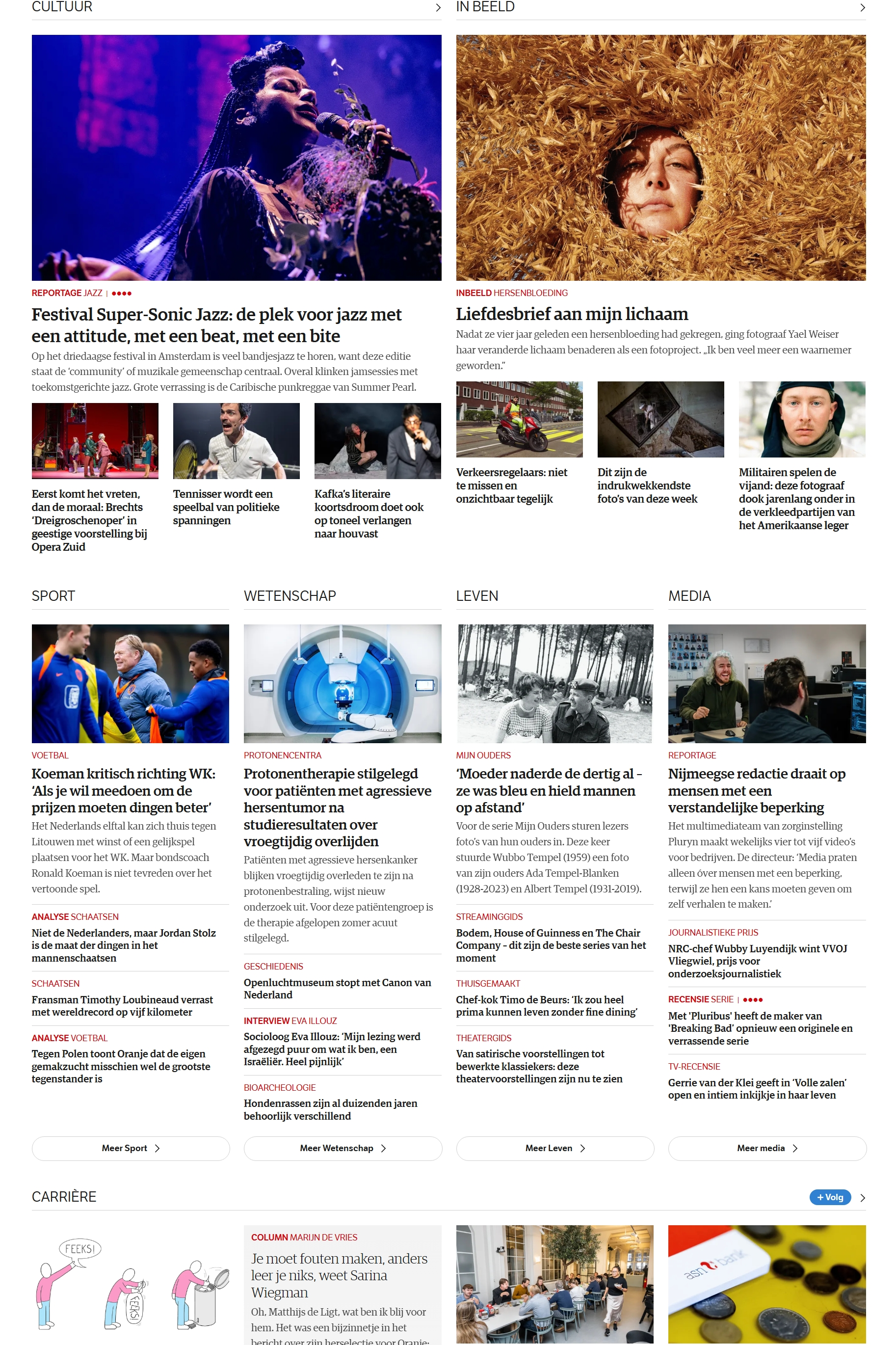 De Volkskrant 是荷兰的一家主要日报,涵盖广泛的新闻内容,包括政治、文化、经济、社会、科学、体育等各个领域。它提供深入的分析、评论以及各种专题报道,旨在为读者提供全面的新闻视角。网站有着强烈的本土特色,同时也注重国际新闻的报道,尤其对欧盟事务、全球气候变化等议题给予了较多关注。作为荷兰的主要媒体之一,De Volkskrant 不仅提供文字报道,还包含了视频、播客和图文等多样的内容形式,确保用户能够接收到多渠道的信息。