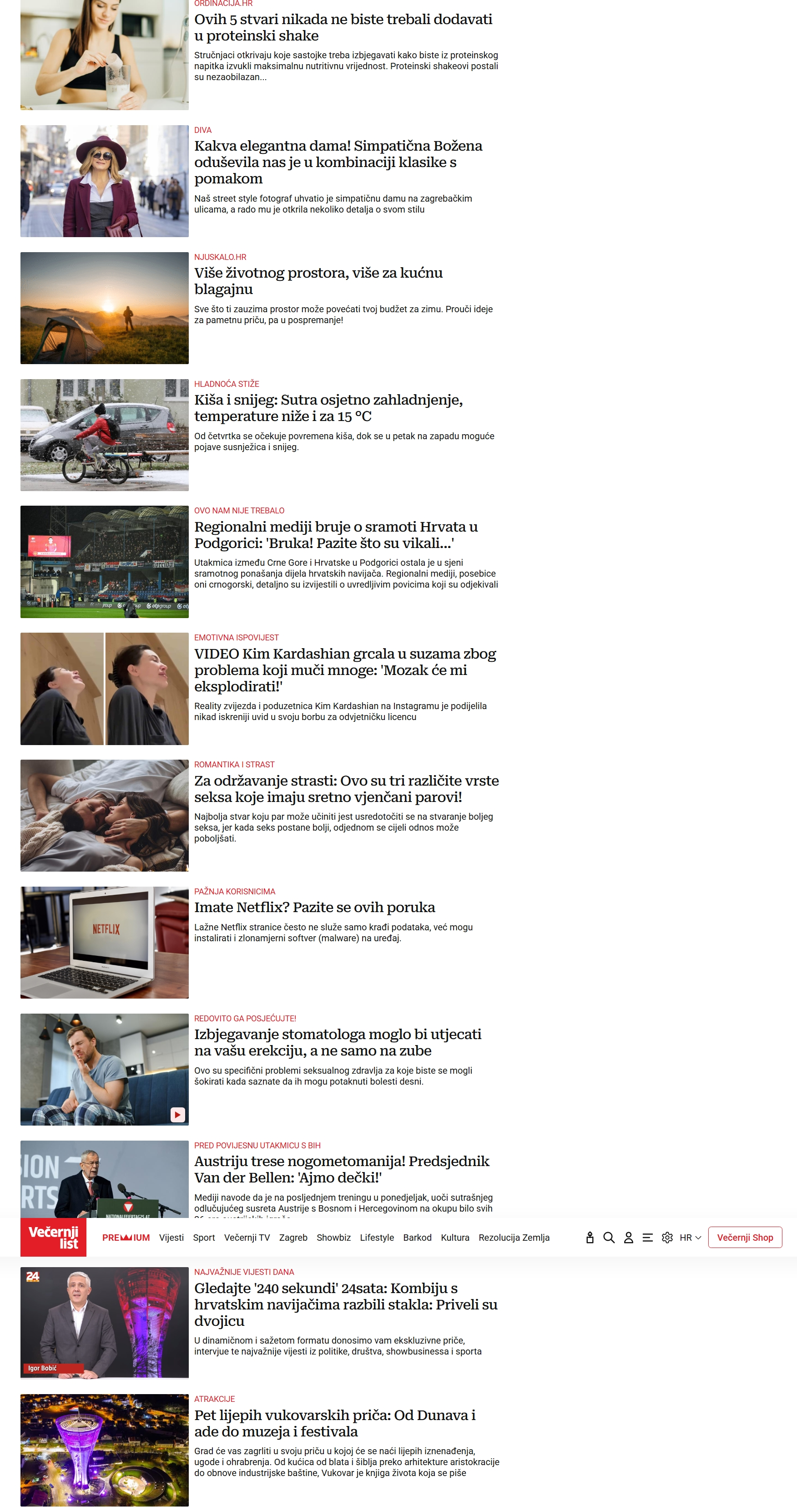 24sata.hr是一个面向全球用户的综合新闻网站,以提供迅速更新的新闻内容为主,尤其关注娱乐、社会、体育等领域的热点话题。网站通过分类明确的布局与直观的导航栏,便于用户根据个人兴趣快速找到感兴趣的内容。无论是全球新闻,还是本地新闻,该网站都能及时呈现,满足用户的多样化需求。