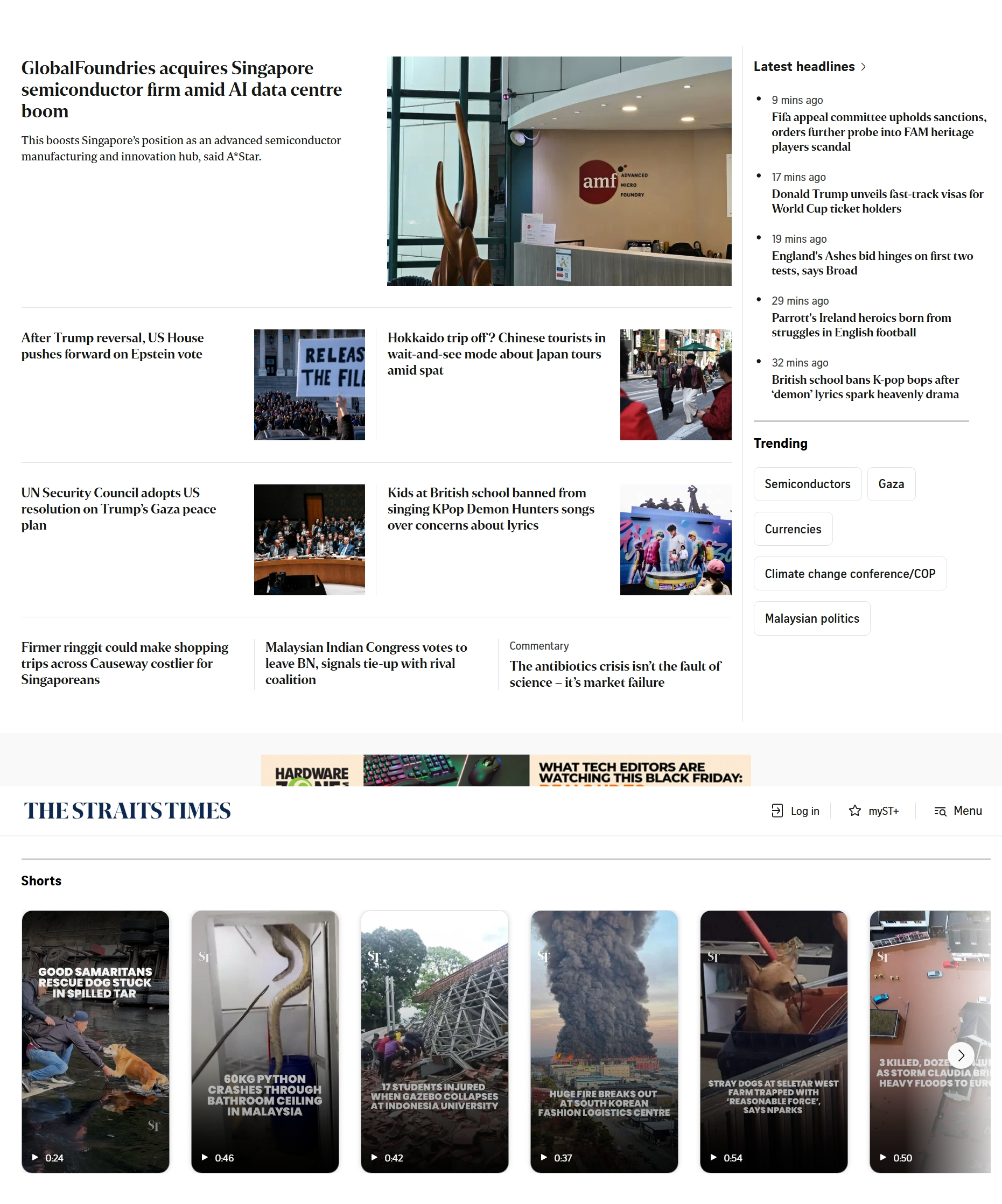 The Straits Times 是新加坡最具权威性的英文新闻平台之一,提供全球及地区新闻的深入报道和分析。作为新加坡最大的报纸之一,The Straits Times 拥有长达百年的历史,致力于为用户提供准确、及时、全面的新闻资讯。网站涵盖了政治、经济、科技、社会、文化等多个领域,不仅关注新加坡本地新闻,还注重全球新闻的实时更新,成为全球华人及国际读者获取新闻的重要平台。